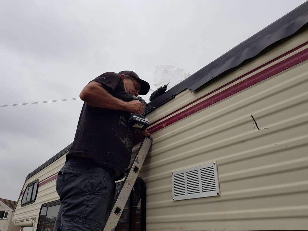 Then we fitted the metal trims strips, which we painted in Grampian Grey, a 1960s and 1970s classic car paint colour. We are using stainless steel screws to fit any external trims. In total we estimate that we will use a total of 800 stainless steel screws on the RV project.