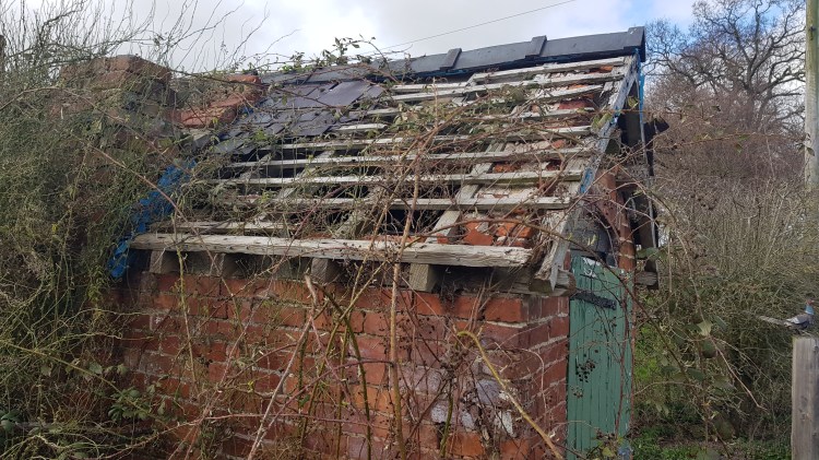 The above is a standalone brick built building on the land, which houses a connection for the mains water and a mains electricity supply. Clearly it is not in great shape.