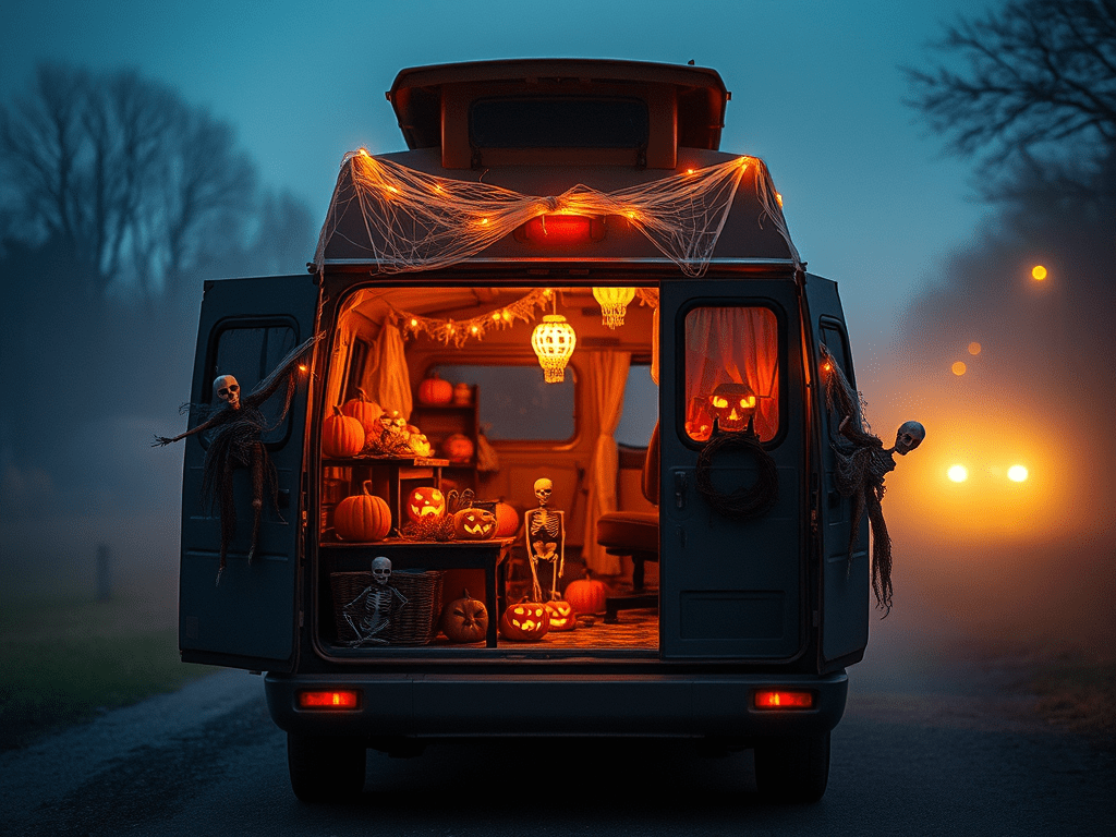 Join the Halloween fun with a spooky van makeover, a van carving contest, a costume parade on wheels, campfire ghost stories, and a chilling road trip playlist. Create unforgettable memories while celebrating Halloween on the road!